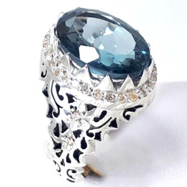 Natural Topaz Swiss Blue Men Ring Pazhen