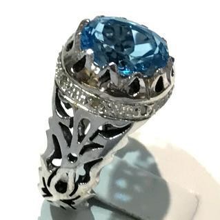 Natural Topaz Swiss Blue Men Ring Nouzar